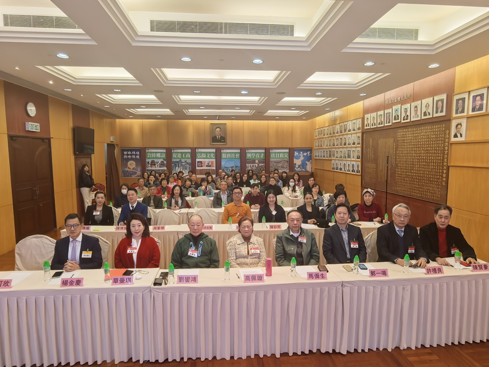 第一排左起:楊金慶醫生、章曼琪常務會董、劉鑾鴻副會長、高佩璇會長、馬僑生常務會董、郭一鳴會務顧問、許...