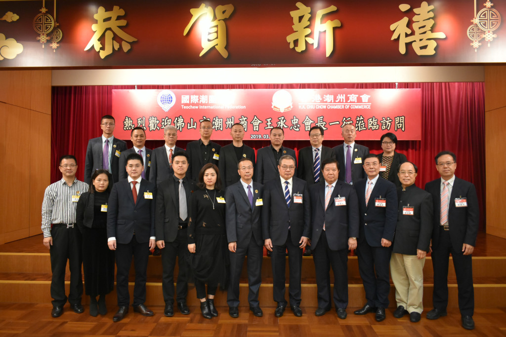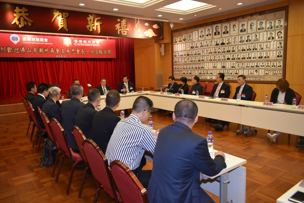 2019年3月1日,佛山市潮州商會會長王承忠率團到訪香港潮州會館。香港潮州商會副會長黃書銳,永遠榮譽會長、國際潮團總會常務理事、香港潮屬社團總會主席陳幼南等會見了訪問團一行。