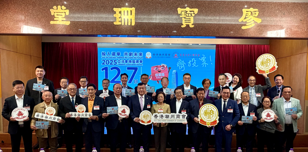11月17日香港潮州商會與香港汕頭社團總會聯合舉辦「2025年立法會換屆選舉候選人見面會」,兩會成員呼籲全體會員及市民12月7日立法會選舉投票日踴躍投票