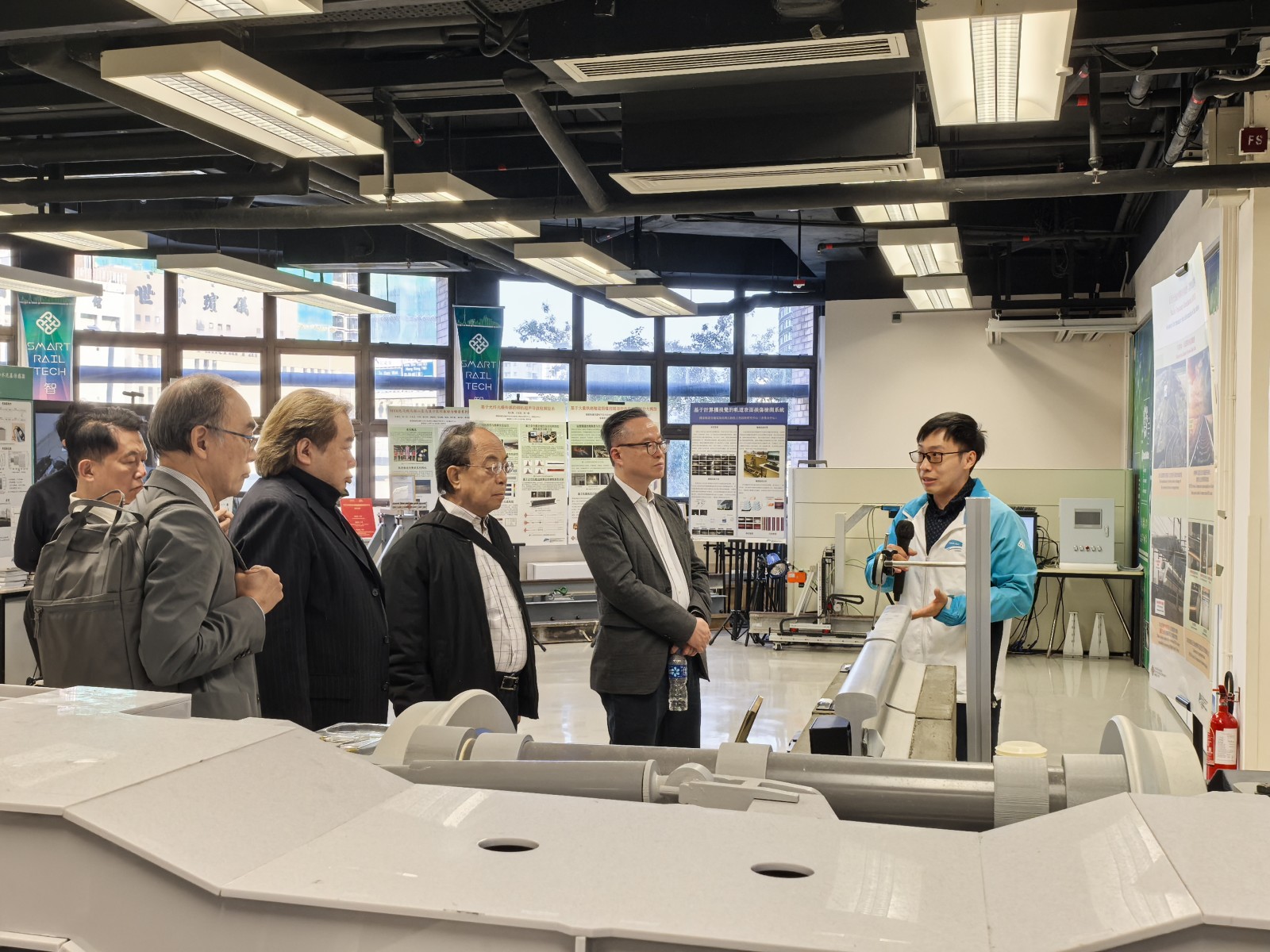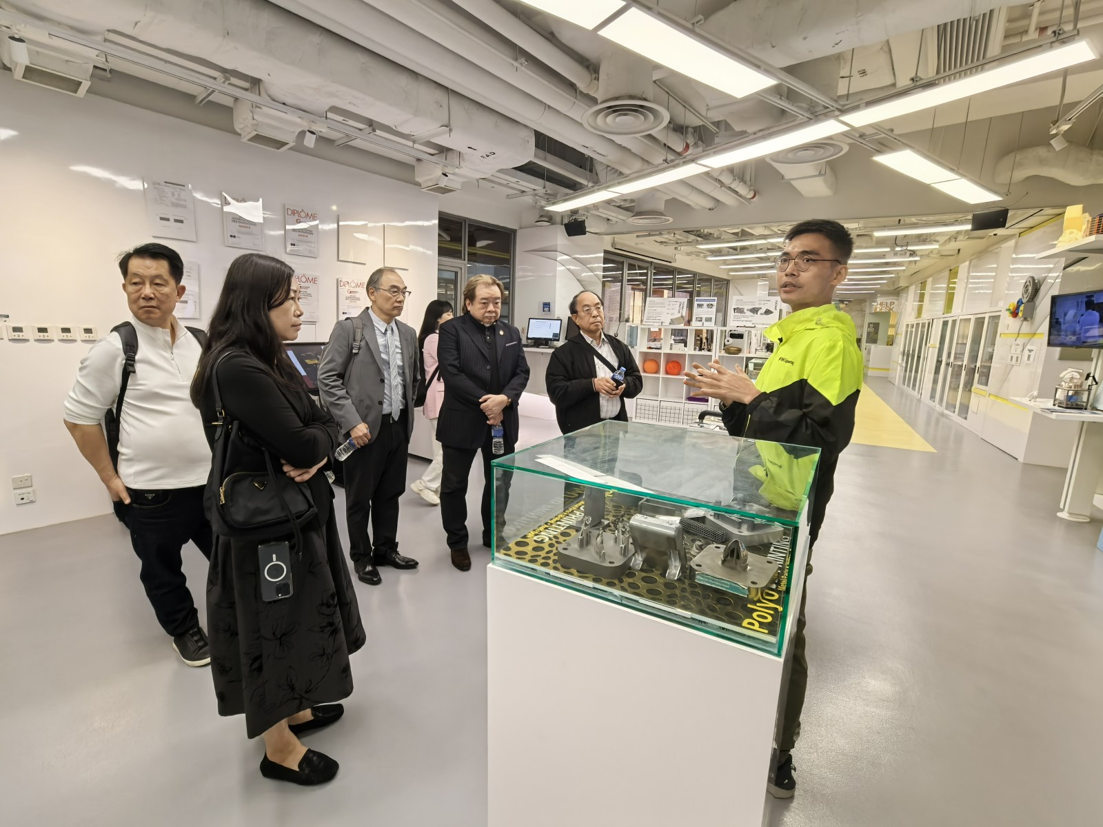 香港理工大學區瑋璣博士研究員(左一)向本會訪問團介紹機件性能