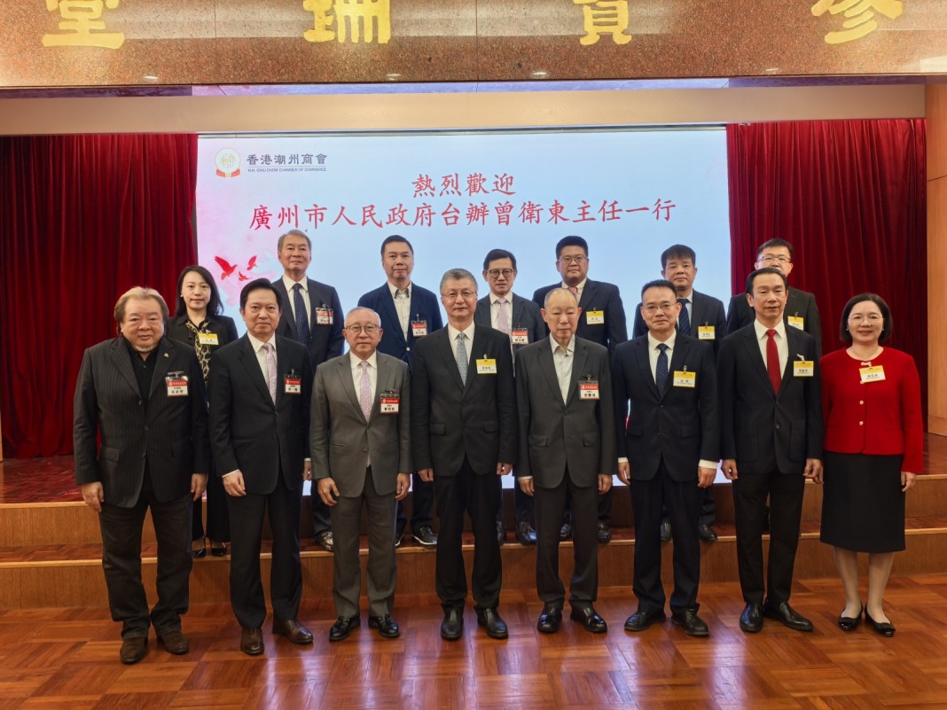 2026年4月2日,香港潮州商會於會所8樓會議室接待廣州市委台辦曾衛東主任一行。雙方就深化穗港台經貿合作、推動兩岸融合發展等議題進行深入交流,氣氛熱烈融洽。