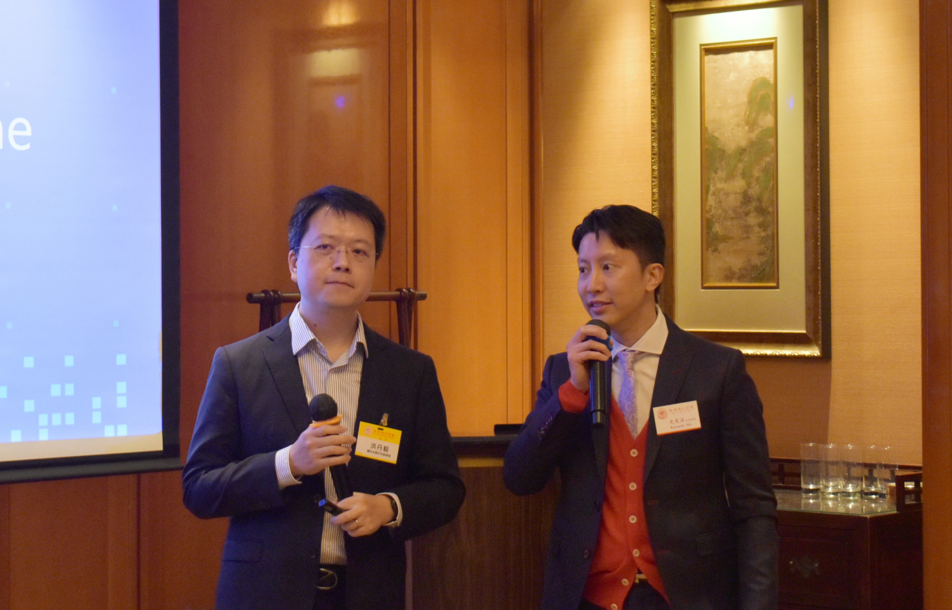 騰訊金融科技副總裁洪丹毅(左)同青委主任史昊洺(右)討論金融科技相關事務