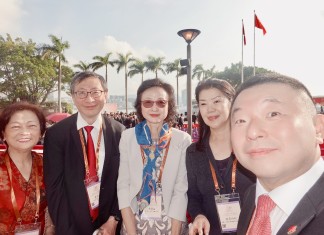 香港潮州商會首長出席國慶76周年升旗禮和酒會